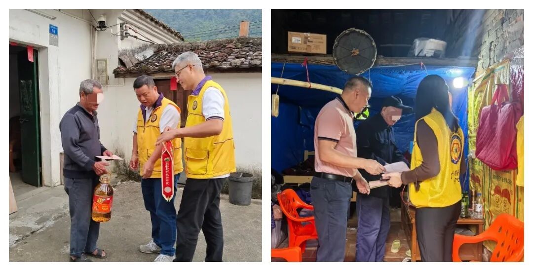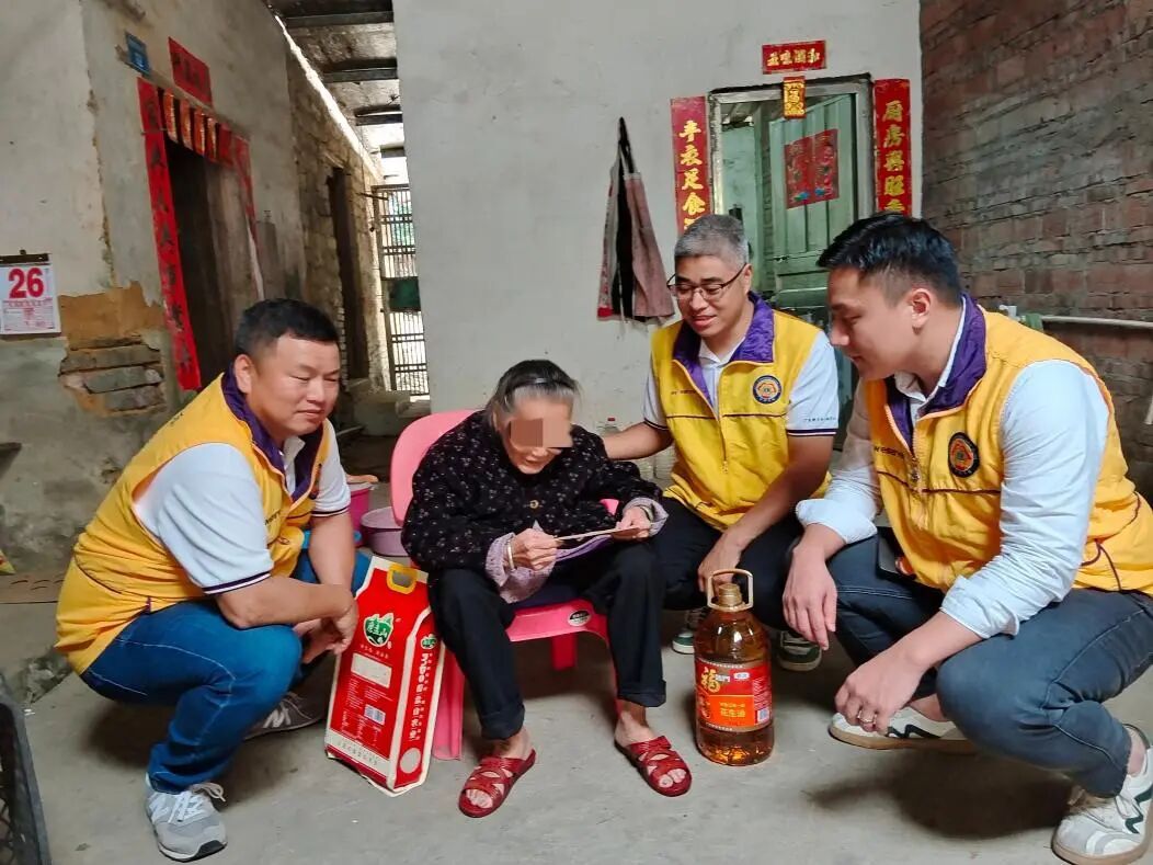 横河镇直径村是广东省重要的革命老区之一,拥有丰富的红色历史资源。80%面积是山地,部分村民因身体残疾、年迈体弱或家庭经济困难,生活面临着不同程度的挑战。仪式结束,会员和志愿者们,带着精心准备的慰问物资和满满的爱心,分组入户走访。