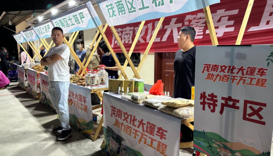 此外,为增加村民收入,激活村中夜经济,落实促销活动,“茂南文化大篷车”除了文化及公益服务外,还增设了“土特产”及美食摊档,发动村民拿出当天最新鲜、最好的“土特产”、果蔬现场展销;美食小吃展位飘来阵阵香气,引得人垂涎,村民们边吃边逛,惬意体验这场“有色有味又有趣”的欢乐盛会。