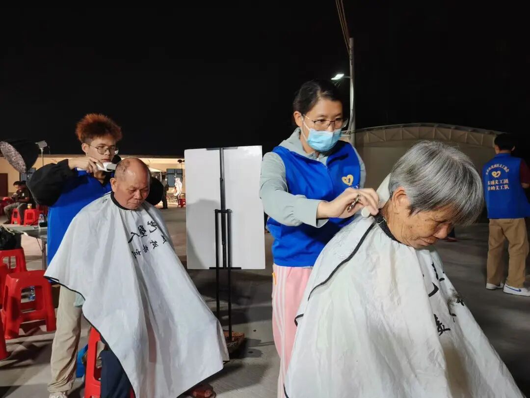 志愿服务摊位更是熙熙攘攘。义剪摊位前,理发师耐心为老人修剪发型,还贴心询问“剪短一点还是留长些”。