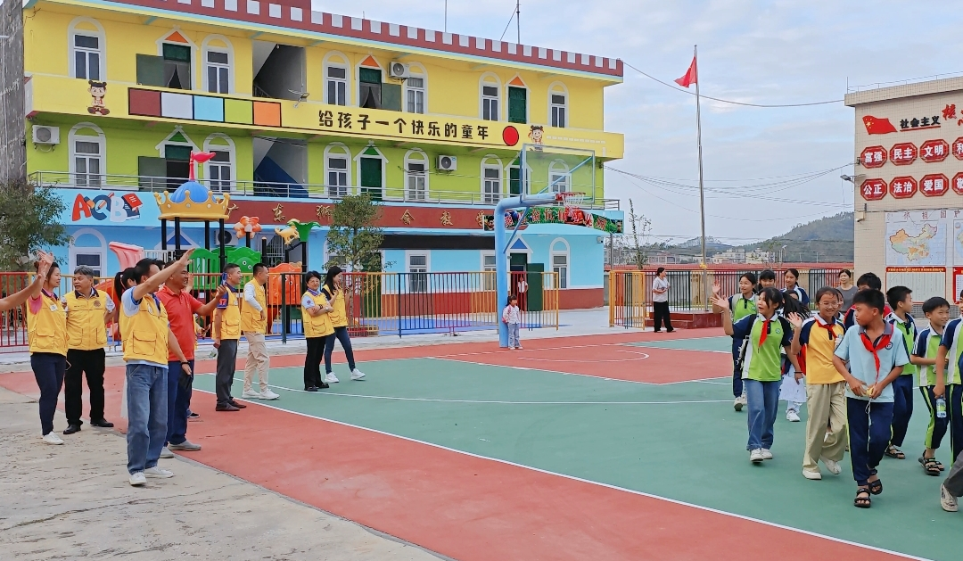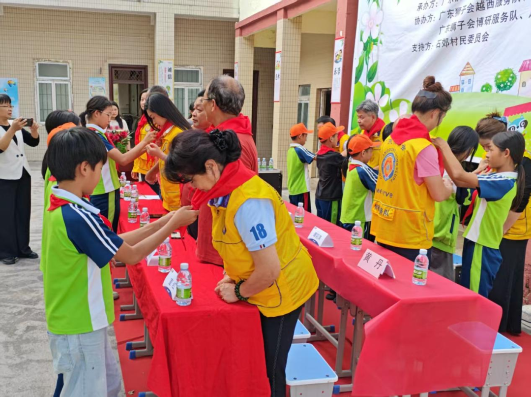 主持人热情引荐嘉宾,心系乡村教育的当地村委干部林德亮、村长赖坤锦和老村长赖坤雪,以及广东狮子会代表——活动召集人、慈爱服务队队长刘美君,“南粤扶残・艺海友爱” 委员会主任吴伟成,会员管理二部财务专员宣红,还有各联合服务队的会员们,每念及一个名字,孩子们雷鸣般的掌声,满含对爱心使者的热忱欢迎。